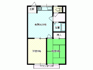 | 詳細間取 | 2LDK (洋6帖×1、和6帖×1、LDK9.25帖) | ||