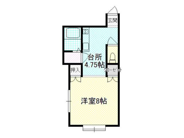 | 詳細間取 | 1K (洋8帖×1、キッチン4帖) | ||