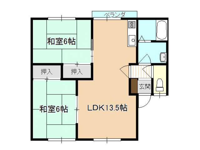| 詳細間取 | 2LDK (和6帖×2、LDK13.5帖) | ||