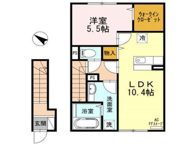 | 詳細間取 | 1LDK (洋5.5帖×1、LDK10.4帖) | ||