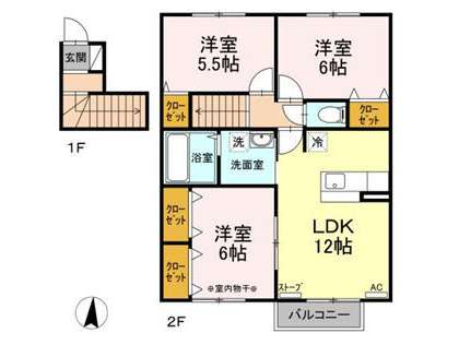 | 詳細間取 | 3LDK (洋6帖×2、洋5.5帖×1、LDK12帖) | ||