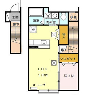 | 詳細間取 | 1LDK (洋3帖×1、LDK10帖) | ||