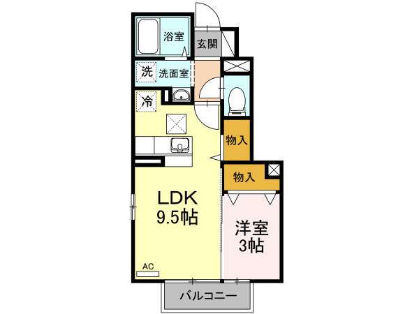 | 詳細間取 | 1LDK (洋3帖×1、LDK9.5帖) | ||