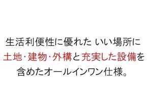 | 設備 | バス(有 シャワー有 追焚機能付 給湯式) トイレ(洋式 独立 水洗 暖房便座 洗浄機能付) 上水道設備(公営) 下水道設備 給湯(ガス) 洗面化粧台(独立)(シャワー付) LPガス ガスコンロ(3口) TV付インターホン エアコン 下駄箱 洗濯機置場 システムキッチン ウォークインクローゼット 網戸 照明器具 TVアンテナ カーポート フローリング クローゼット 郵便受 デザイナーズ 電気自動車充電設備 食洗機 ヒートポンプ式フル暖エアコン1基 省エネ高効率ガス給湯器(エコジョーズ)はメンテナンス保証付 | ||
