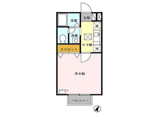 | 詳細間取 | 1K (洋8帖×1、キッチン3帖) | ||