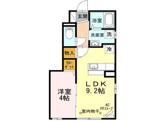| 詳細間取 | 1LDK (洋4帖×1、LDK9.2帖) | ||