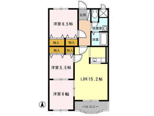 | 詳細間取 | 3LDK (洋6.5帖×1、洋6帖×1、洋5.5帖×1、LDK15.2帖) | ||