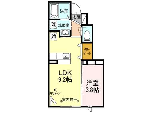 | 詳細間取 | 1LDK (洋3.8帖×1、LDK9.2帖) | ||