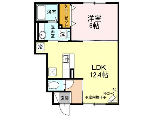 | 詳細間取 | 1LDK (洋6帖×1、LDK12.4帖) | ||