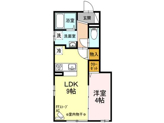 | 詳細間取 | 1LDK (洋4帖×1、LDK9帖) | ||