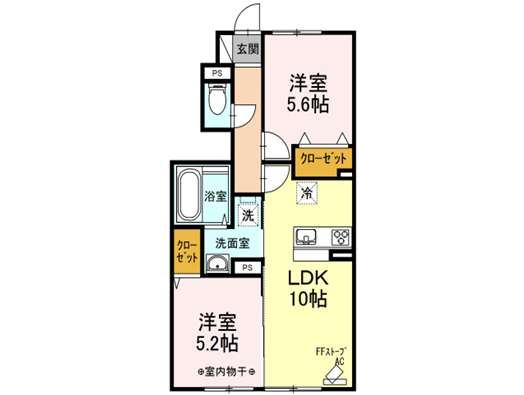 | 詳細間取 | 2LDK (洋5.6帖×1、洋5.2帖×1、LDK10帖) | ||