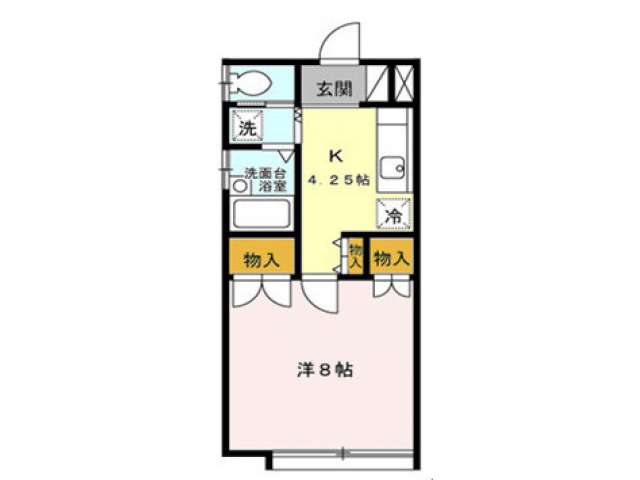 | 詳細間取 | 1K (洋8帖×1、キッチン4.25帖) | ||