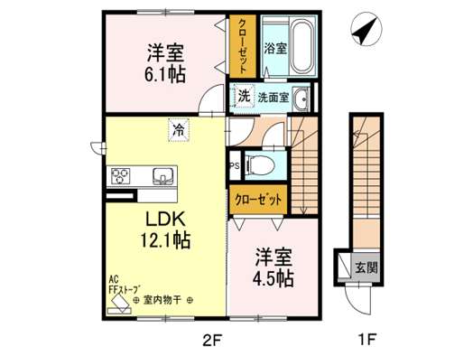 | 詳細間取 | 2LDK (洋6.1帖×1、洋4.5帖×1、LDK12.1帖) | ||