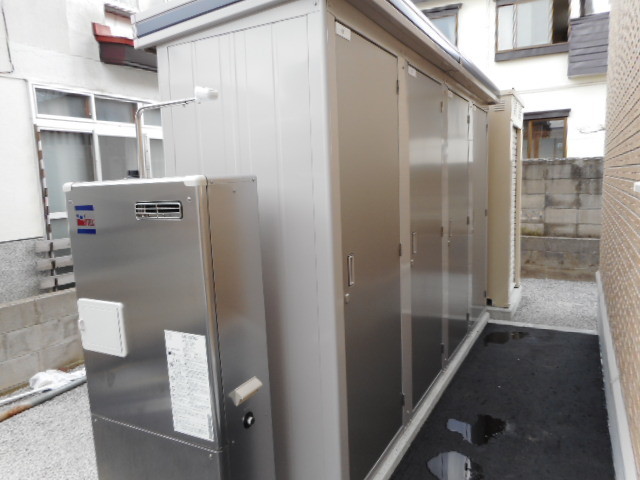 | 設備 | 下水道設備 給湯(ガス) 洗面化粧台(独立)(シャワー付) LPガス TV付インターホン エアコン FFストーブ 下駄箱 洗濯機置場 物置 照明器具 BSアンテナ インターネット無料 ロードヒーティング ALSOKホームセキュリティ ICカードキー | ||