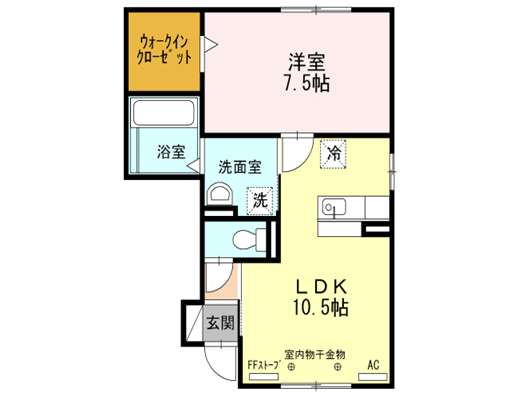 | 詳細間取 | 1LDK (洋7.5帖×1、LDK10.5帖) | ||
