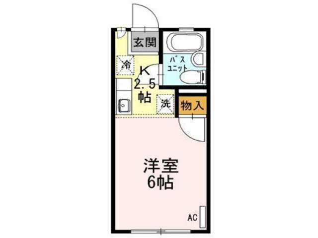 | 詳細間取 | 1K (洋6帖×1、キッチン2.5帖) | ||