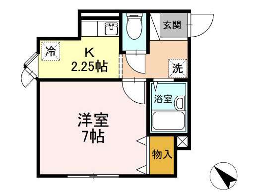 | 詳細間取 | 1K (洋7帖×1、キッチン2.25帖) | ||