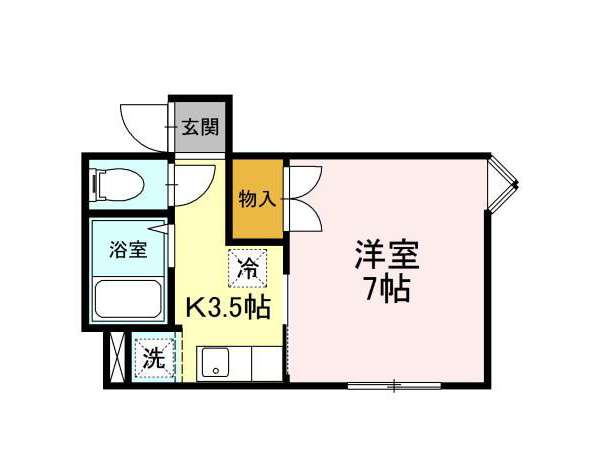 | 詳細間取 | 1K (和7帖×1、キッチン3.5帖) | ||