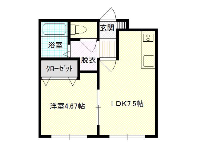 | 詳細間取 | 1LDK (洋4.6帖×1、LDK7.5帖) | ||