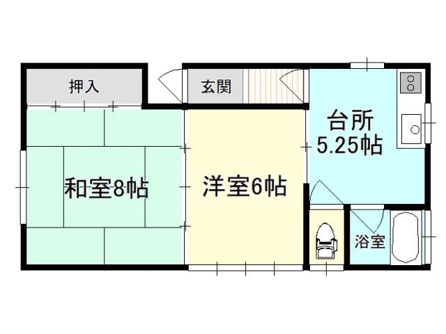 | 詳細間取 | 2K (和8帖×1、洋6帖×1、キッチン5帖) | ||