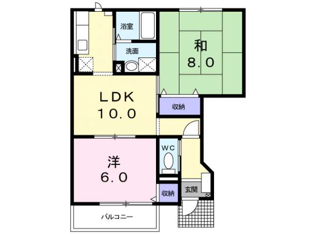 | 詳細間取 | 2LDK (洋6帖×1、和8帖×1、LDK10帖) | ||